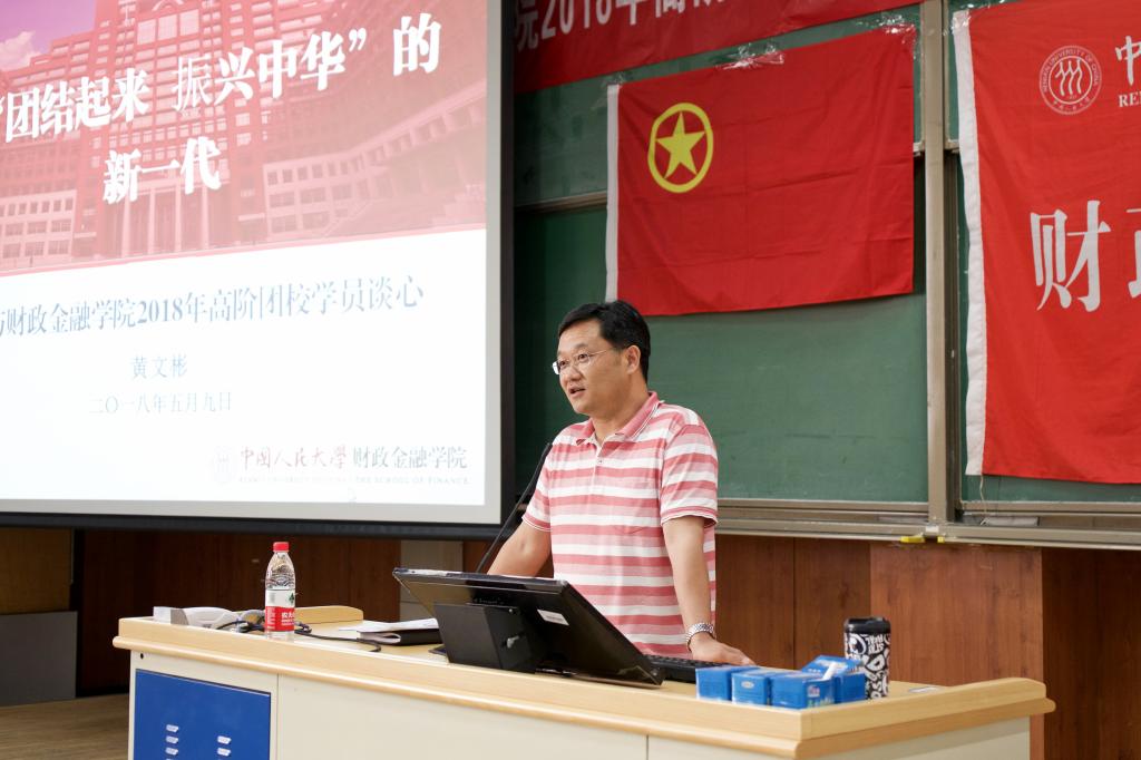 Top 网上赌博网站大全 党委副书记黄文彬发表题为“做‘团结起来,振兴中华’的新一代——与Top 网上赌博网站大全 2018年高阶团校学员谈心”的专题报告,指出应当高度关注青年价值观问题,引用习近平总书记五四青年节在北大的讲话,讲解了青年人树立正确价值观的重要性,以及什么是正确的价值观;带领学员们回顾历届党和国家领导人对于我校的重视,讲述了习近平总书记与我校三十多年来的密切联系,使学员们真切地感受到了党和国家领导人对我校的关心。黄书记介绍了财金领军人才成长“1682工程”行动计划,即“一个目标、六个平台、八项素质、两个注重”,总结了Top 网上赌博网站大全 的青年工作和本年度在各类校级比赛中的表现并表示希望在团员骨干们能够总结经验、吸取教训,在接下来的活动取得更好的成绩。