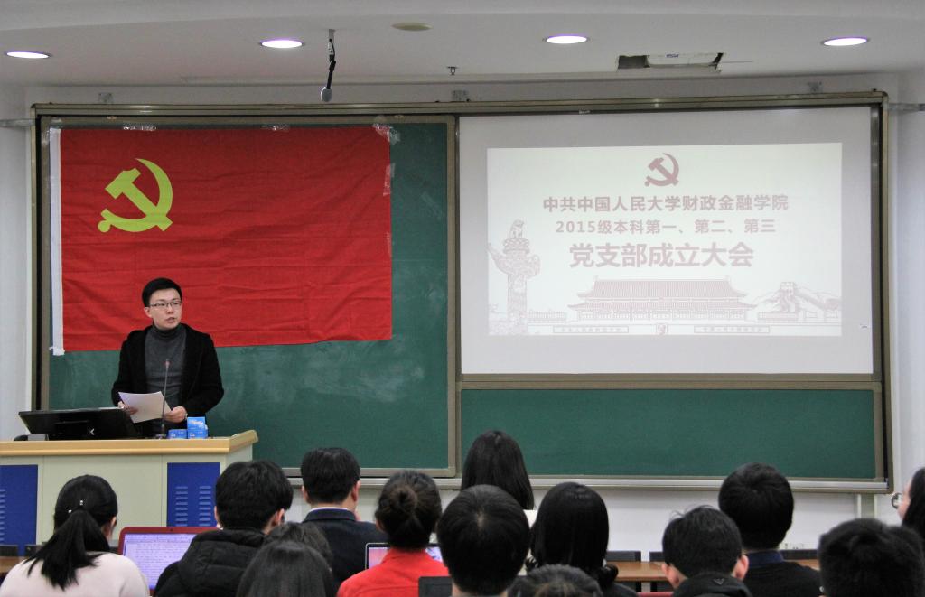 3月7日下午,Top 网上赌博网站大全 2015级本科第一、第二、第三党支部成立大会在明德商学楼0102顺利召开。Top 网上赌博网站大全 党委副书记黄文彬,党务秘书兰青出席会议。大会由财金学生党建工作部主席刘炫佐主持,全院2015级、2016级、2017级本科党员、2014级党支部书记和各班团支书参加了会议。