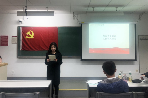 接下来,进行了党支部转正大会。刘璇同志上台汇报了自己在一年预备期的各方面的情况,并承诺将会继续以党员的要求严格要求自己。通过表决,党支部全票通过刘璇同志的转正申请。