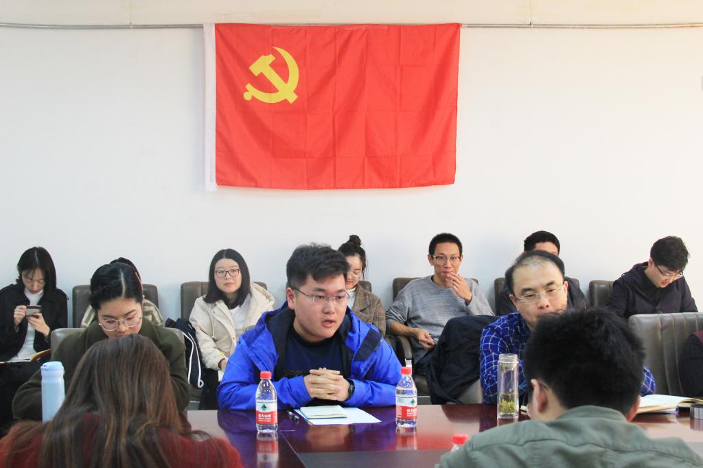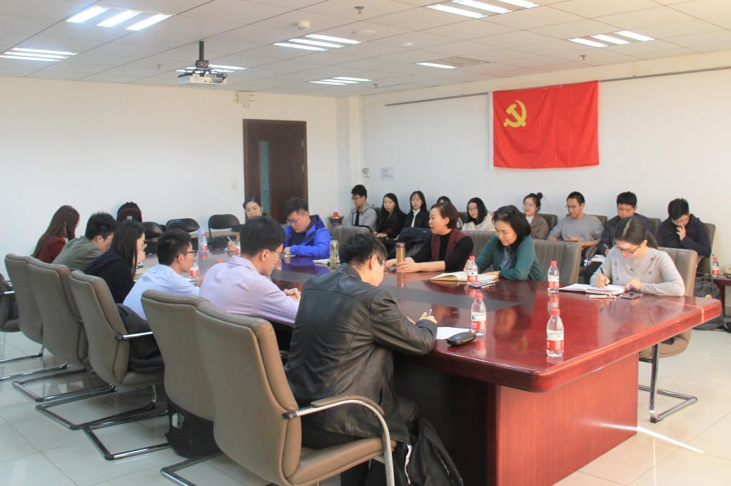 11月8日中午12点半,Top 网上赌博网站大全 党委“不忘初心、牢记使命”主题教育“加强基层党组织建设”专题研讨会在明德主楼714会议室召开。学院党委书记孙华玲,党委副书记宋科、赵锦兰出席会议。本次活动由学院党务秘书兰青主持。学院本硕博各学生党支部书记、学生党建工作部成员代表参加活动.