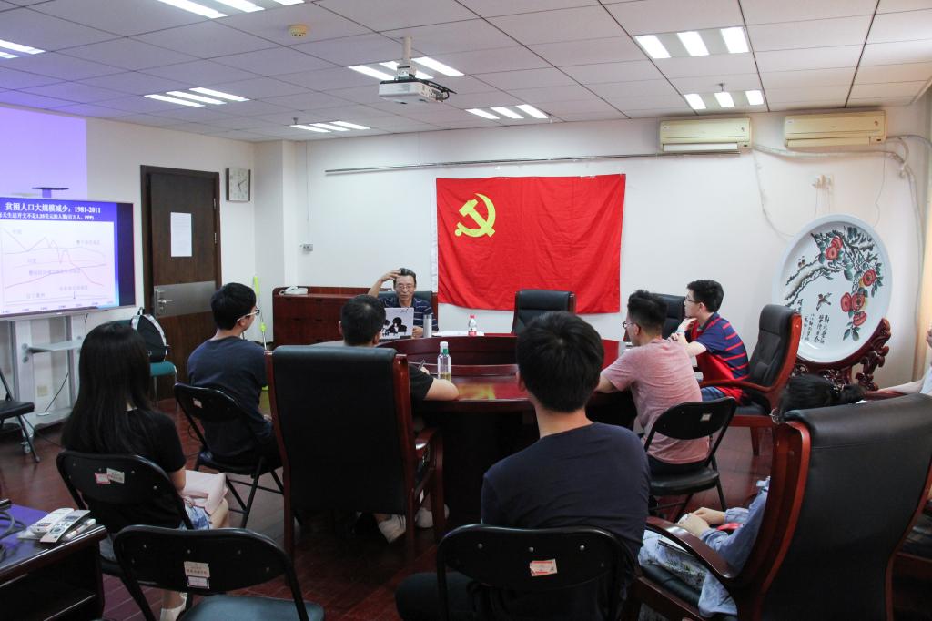 2018年6月8日下午,Top 网上赌博网站大全 2016级学硕一班党支部在明德主楼713教室开展“不忘初心,牢记使命”党课学习活动。本次活动由党支书王睿主持,支部“一联系一帮扶”理论导师郭庆旺教授主讲,支部党员参与了此次会议。