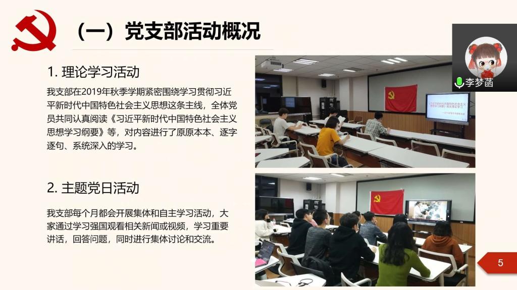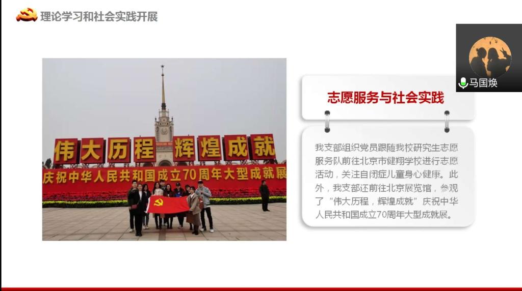 过去一年,学院各基层党支部工作成效显著。组织生活方面,各支部严格按照上级党组织要求开展理论学习,定期举办主题党日活动;同时创新活动形式,形成一系列支部特色活动。2016级本科第一党支部“且听书吟”读书感悟分享活动,朗诵经典名著,畅谈阅读感悟,巩固理论学习成果;2019级学硕党支部 “清北人”三校支部共建活动围绕十九届四中全会精神进行深入探讨,学精神、明方向;疫情期间,2019级金融专硕二班党支部成员手写祝福,将美好祝愿与必胜信心蕴藏在字里行间。