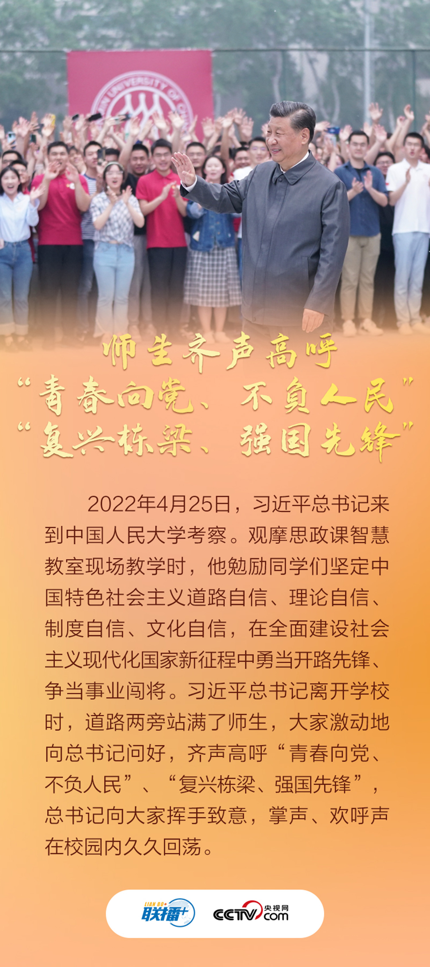 4月25日,在五四青年节即将到来之际,习近平总书记来到中国人民大学考察调研。