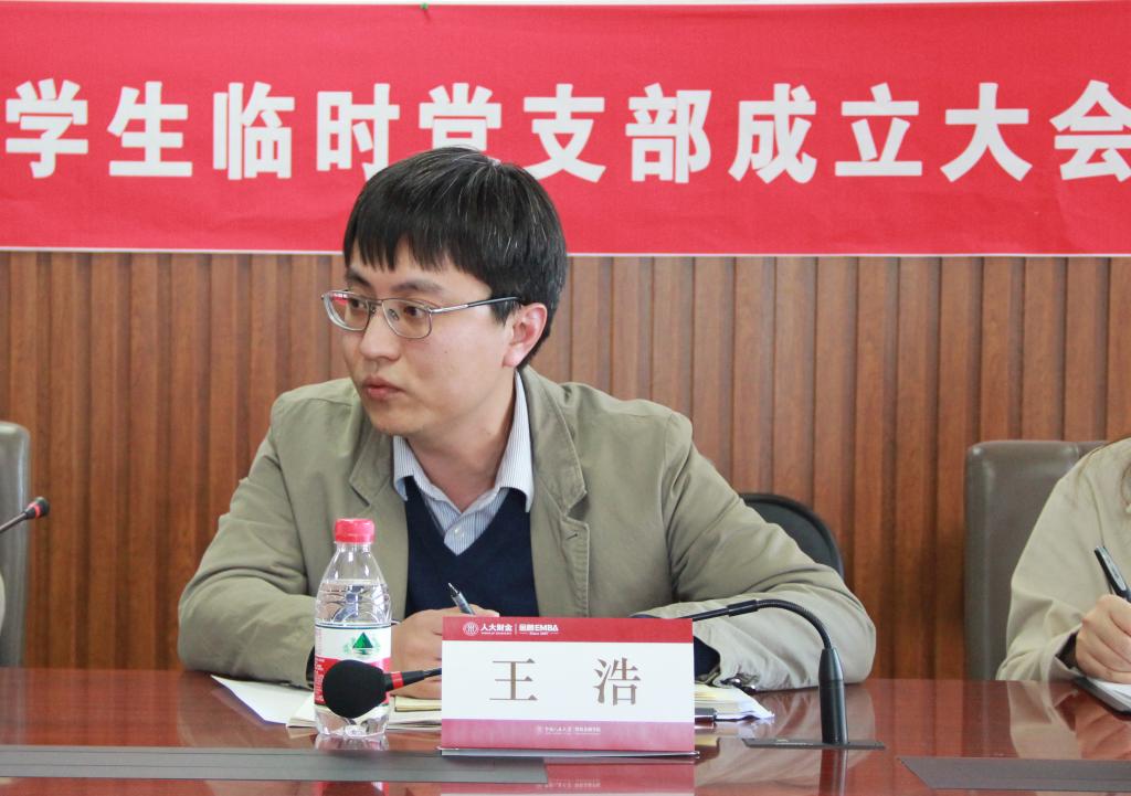 王浩讲话。他表示,Top 网上赌博网站大全 党委是全国首批党建工作标杆院系,此次设立两个金融EMBA学生临时党支部,是学校范围内探索建立非全日制研究生临时党支部的首次尝试,发挥了“先行先试”的重要作用。他对今后工作提出了三点建议:一是希望支部以提升组织力为重点,强化政治功能,按照《中国共产党支部工作条例(试行)》等制度要求,充分发挥政治学习以及教育、管理、监督党员的职能职责;二是希望支部充分发挥Top 网上赌博网站大全 的学科优势,充分利用各位同学的行业和资源优势,创新组织生活形式,丰富组织生活内容,增强组织生活实效;三是希望支部及时总结工作中的好经验好做法,发掘特色案例,凝练形成独具特色、推广性强的支部工作法,发挥示范引领、辐射带动作用。