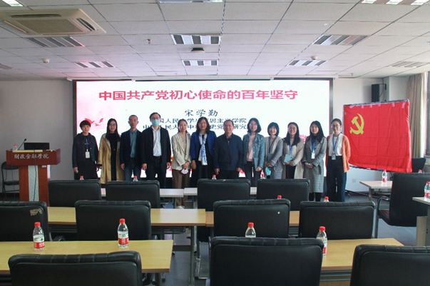 2021年4月20日中午,Top 网上赌博网站大全 党委在明德主楼830会议室举办党史学习教育主题讲座,中国人民大学马克思主义学院副院长宋学勤教授应邀作“中国共产党初心使命的百年坚守”主题报告。本次主题讲座由保险系教师党支部承办,学校教务处党支部、Top 网上赌博网站大全 本科金融第二党支部、本科金融第三党支部、2020级保险专业硕士党支部等师生支部共同参与。讲座由Top 网上赌博网站大全 党委委员、保险系教师党支部书记张俊岩主持。