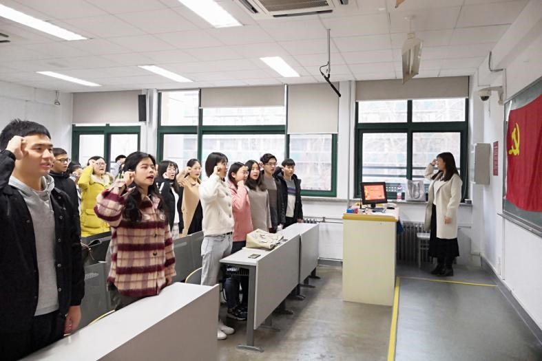 上午八点,全体预备党员在公教三楼3301室开展宣誓活动,歌唱国际歌,并在学生党建工作部组织部部长曹佳星的带领下进行了庄严的入党宣誓。