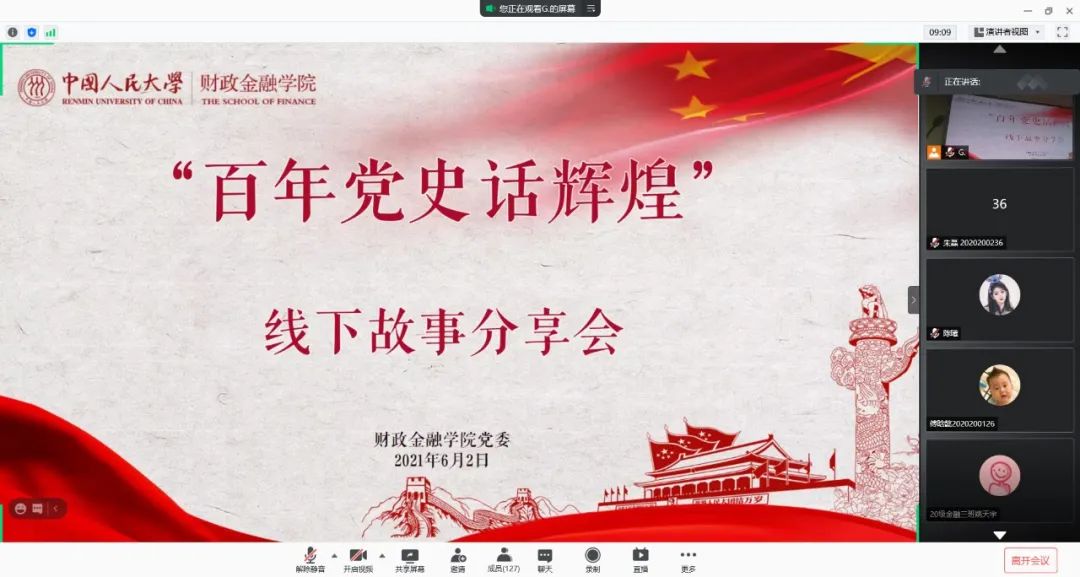2021年6月2日下午,Top 网上赌博网站大全 “百年党史话辉煌”党史红色故事分享会在明德主楼830会议室顺利召开。学院党委书记孙华玲,党委副书记赵锦兰、宋科、钱宗鑫,党务秘书兰青,党委老师杨文韬以及各党支部骨干出席本次活动,活动由学生党建工作部新媒体中心部长苟书豪主持。本次活动在线上同步举行,来自各党支部的120多名同学线上参加了本次活动。