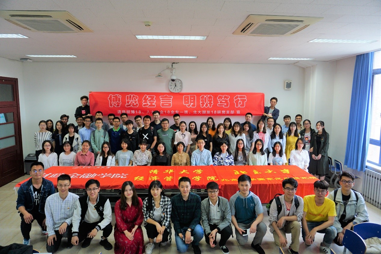 为纪念中华人民共和国建国70周年和五四运动100周年,进一步学习贯彻习近平新时代中国特色社会主义思想,加强学风建设,加强与友校党支部的交流学习和相互联系,2019年5月11日上午,Top 网上赌博网站大全 18级金融专硕一班党支部、北京大学国家发展研究院18级研究生党支部和清华大学经济管理学院经博18党支部在清华大学新水利馆327教室举办了以“博览经言树学风,同心共筑中国梦”为主题的三校党团共建活动。活动旨在倡导牢记建国70周年革命成果,在当代大学生中树立优良学风,为实现中华民族伟大复兴的中国梦添砖加瓦。除了各支部的党员,出席本次活动的还有发展对象、积极分子和优秀团员代表。