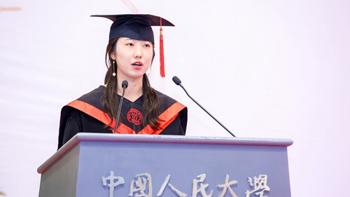 2019届毕业生张艺璇作为学生代表进行了发言。她深情回忆了四年来人大度过的充实而精彩的大学生活,并对母校及学院的培育之恩、父母的养育之恩以及同学们的同窗之情表达了真挚的感谢。她代表全体毕业生表示,未来将秉持在人大收获的求实态度,牢记财金给予的精神力量,把握时代机遇,用努力回馈母校,为社会做出贡献。