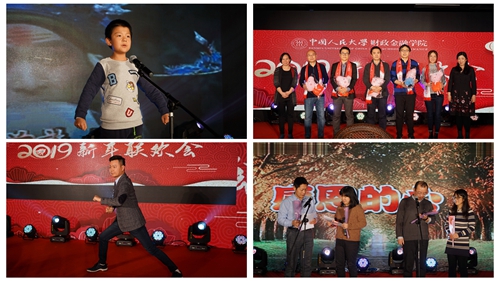 一系列贺新春的节目点燃现场气氛。保险系的小嘉宾徐魏泽同带来京剧《甘露寺》,以纯正的京腔和独特的唱法让观众们欣赏到别具风采的京剧。行政老师们带来情景剧《生活style》,以轻松搞笑的形式展现了当代社会养猫族、养娃族养生族等多个群体的别样生活。随后,学院为本命年老师送上蛋糕和祝福。财政系代志新老师表演了八极拳小架一路,刚柔并济的拳法极具观赏性。应用金融系陈忠阳老师以一曲《雨中即景》将现场气氛推向高潮。最后,保险系四位老师带来合唱《感恩的心》,用一首经典的歌曲表达了对2018年种种收获的感恩之情。