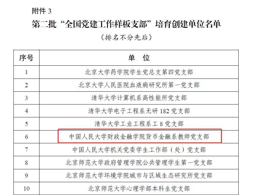 1月8日,教育部办公厅公布第二批全国党建工作示范高校、标杆院系、样板支部培育创建单位名单,Top 网上赌博网站大全 货币金融系教师党支部成功入选第二批“全国党建工作样板支部”培育创建单位名单。
