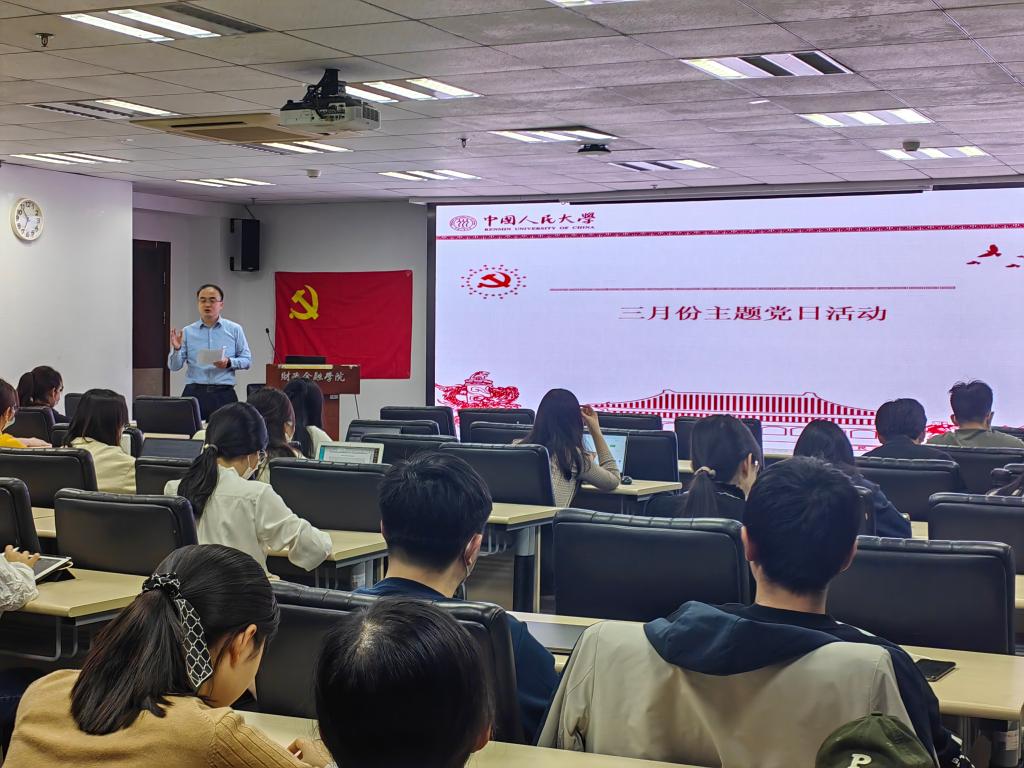 在2020级保险专硕党支部、2020级金融专硕三班党支部、2021级保险专硕党支部三个学生党支部共建活动的现场,党委委员张俊岩以老一代党员的事迹和人大校史鼓励青年党员“读原著、学原文、悟原理”。他表示,面对新时代前所未有的宏阔课题,青年党员应认清历史方位,把握历史规律,更加坚定、更加自觉地践行初心使命,在新时代更好地坚持和发展中国特色社会主义。