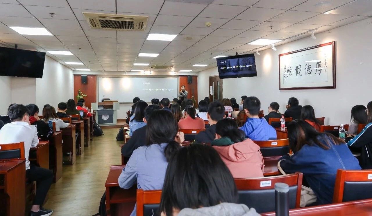 吴鹏校友则介绍了中信公司的三大类业务,就实习和就业中常见疑惑进行讲解。中信公司主要有三大类业务,即股权、债权和并购,三大类业务的共同之处在于对就业人才的专业知识要求很高。针对大学阶段实习、工作中的常见疑惑,吴鹏校友一一讲解。他从“实习如何更有意义”、“找工作应该关注什么”、“职业如何c位出道”三个方面生动幽默地分享了职场的宝贵经验。吴鹏校友表示,实习十分重要,能够结交朋友、提高能力、了解诉求和熟悉社会。他指出,公司在招聘人才时,会通过专业能力、魅力、心态等多方面综合考虑,对于个人而言,找工作时最好从兴趣、户口、薪酬等方面考虑,在大学生活中,要着重提高自己学习能力、适应能力、沟通协调能力,为将来就业打下基础。