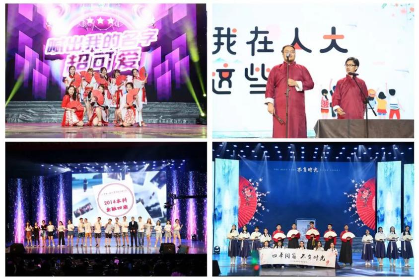 开场舞《Boom》正如其名,一个个充满力量的动作展现着蓬勃的朝气,也点燃了现场观众们的激情。金融一班表演的《喊出我的名字 超可爱!》紧跟时尚潮流,时而轻松,时而古风,以多种多样的形式展现了财金学子的“青春恋爱物语”。纸伞轻摇,黑裙飘飘,信用管理班的歌舞《问剑江湖,不负时光》表达了同学们四年磨剑、踏上征程的雄心壮志;一袭长袍,一把折扇,张琛和梅可的相声《我在人大这些年》将同学们学习生活的点滴片段提炼成一个个包袱,让人不禁捧腹大笑。在歌舞剧《爱的就4你》中,黄勃老师与金融四班同学们的默契配合让现场掌声雷动,首首“金曲”与舞蹈成功勾起大学生活的回忆;在魔术《魔光溢彩》里,颜瑞似乎将普通的杯子、瓶子和纸牌赋以魔法,种种技巧将对人大的感情融合其中,让人目不暇接。当金融的思维与音乐的创意碰撞,许德智等四名同学的原创歌曲《只是人呐》唱尽毕业生心底情怀,相信一切坚持不懈终将收获美好结果;当生动的表演和情节的巧思相配,金融实验班的情景剧《School Master NO.1》幽默演绎“校霸”是如何炼成的,那些常驻图书馆的时光、那些和各种公式定理打交道的日子,似乎正是我们每个人的大学时光。照片是岁月的定格,金融工程班将四年来班级同学的集体照悉数放映,与歌舞《归来仍是少年》相配合,表达了临别之际同学间的不舍和祝福。