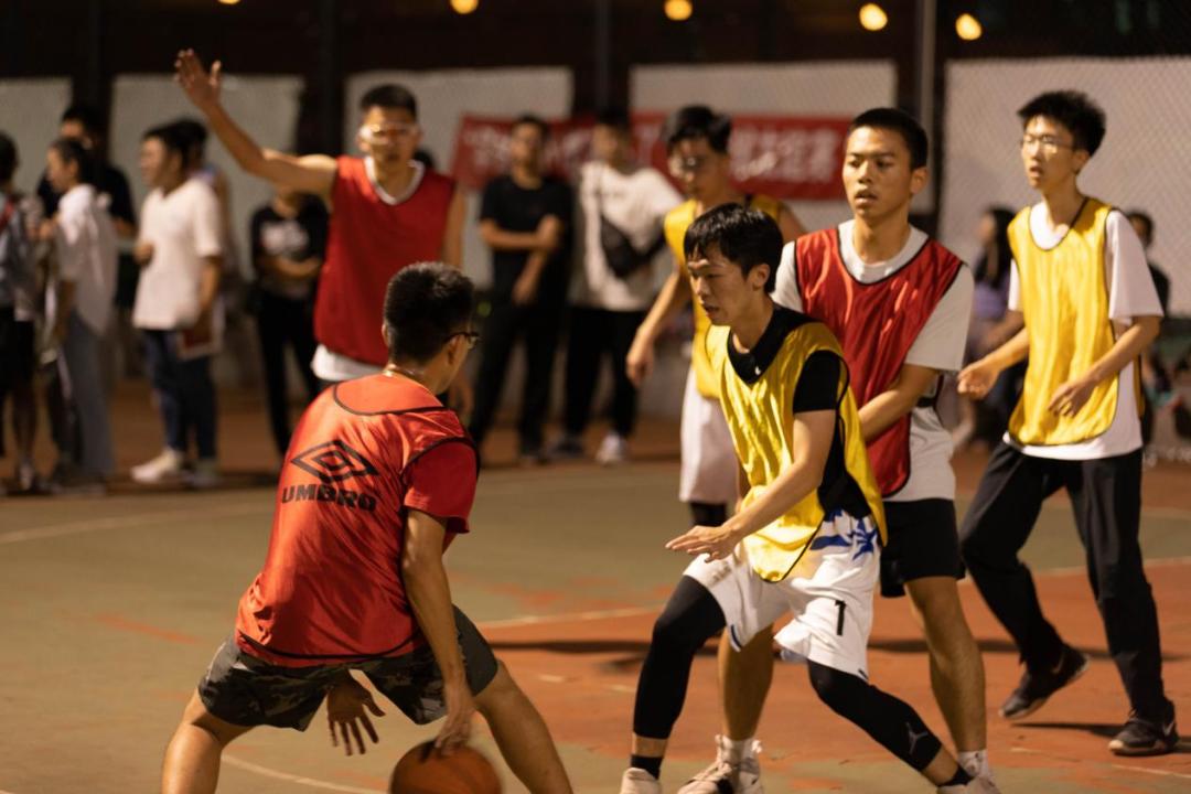 9月17日晚,新生篮球赛决赛在品园篮球场举行。经过小组赛的激烈角逐,新生赛中的两支强队金融二班与金融四班脱颖而出,相会决赛。二班、四班的同学们纷纷来到比赛现场,为本班队员加油助威,队员们也都调整到了最佳状态,早早到达赛场进行热身,等待比赛开始。