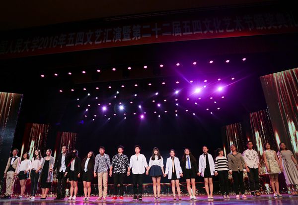 在“八十年八十人”系列活动发布仪式结束后,本次晚会也缓缓落下帷幕,标志着中国人民大学2016年“五·四”文化艺术节的圆满结束。本次文艺汇演暨颁奖晚会的举办,是对今年“五·四”艺术节各项比赛的精彩总结,更是对人大学子出众风采的充分展示。