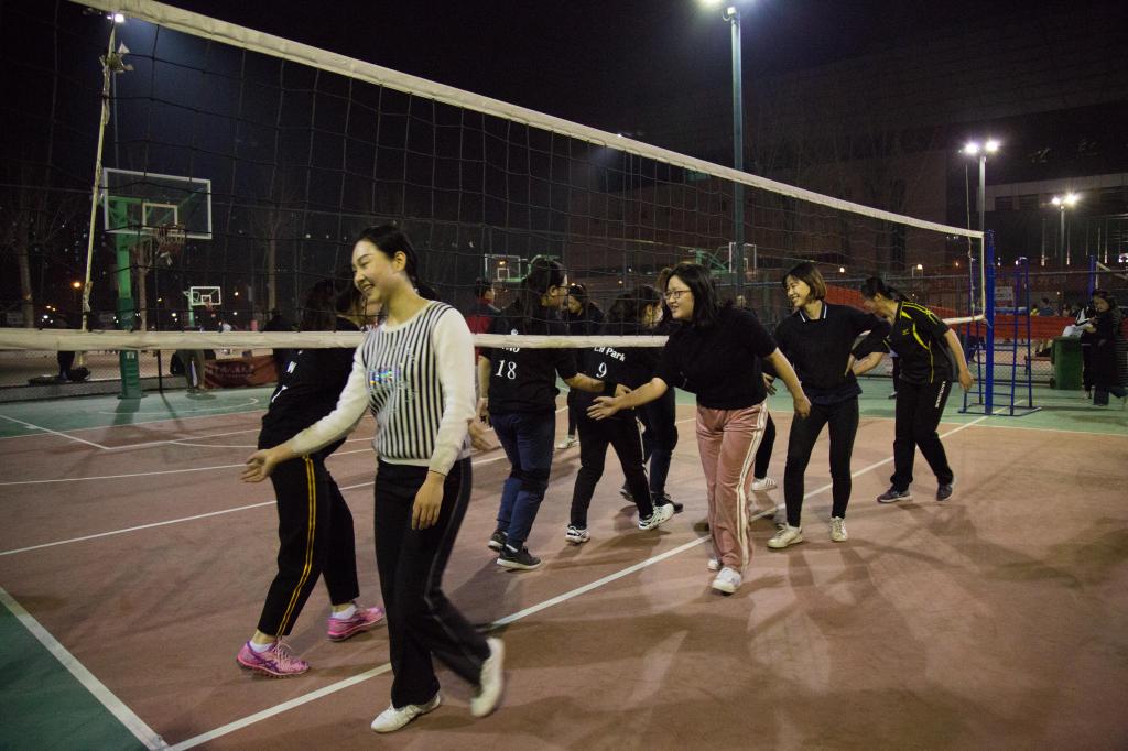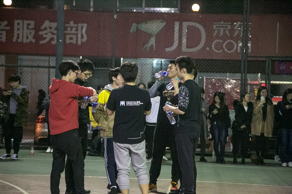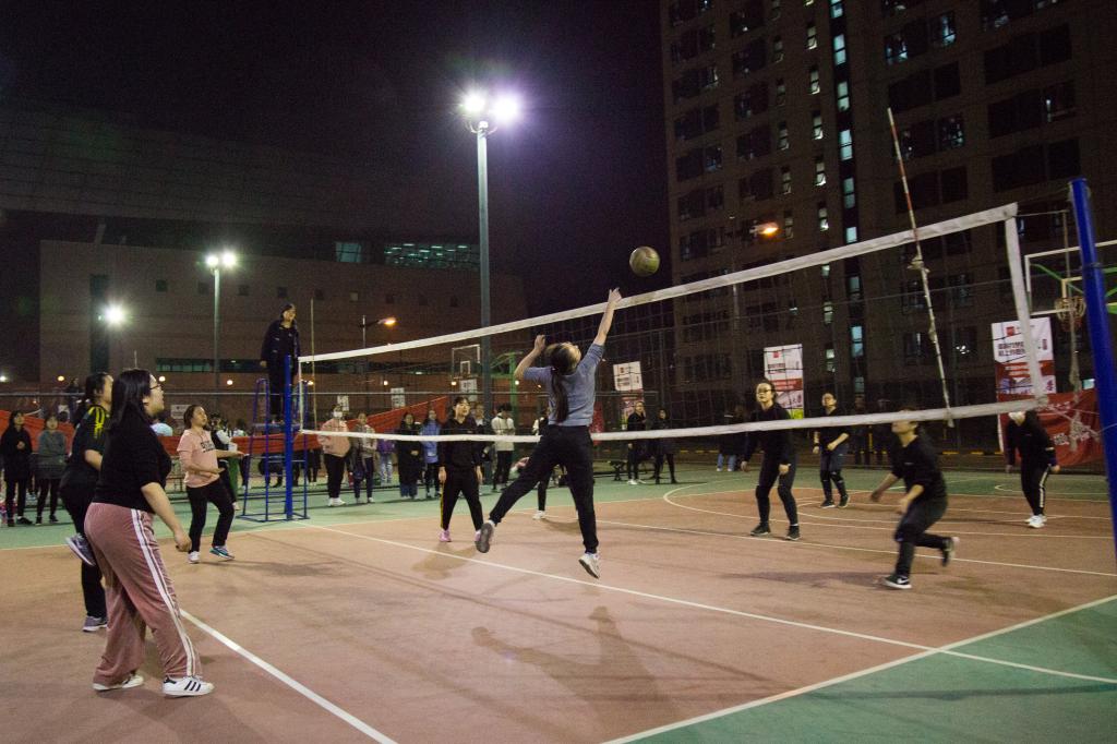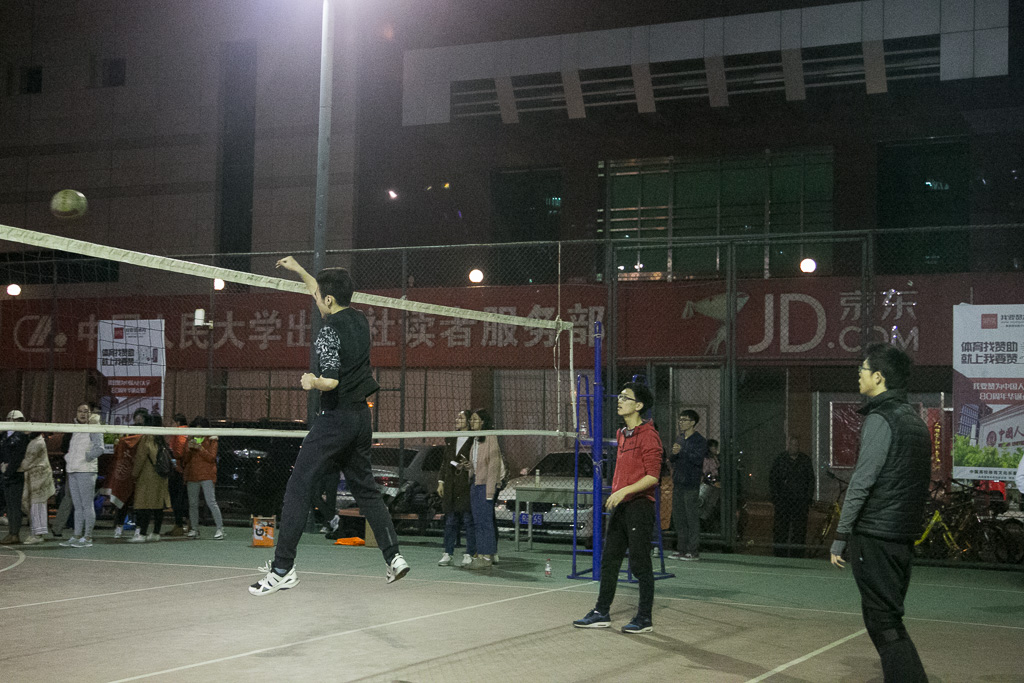 3月23日晚6时整,财金男排与统计学院男排的较量正式开始。
