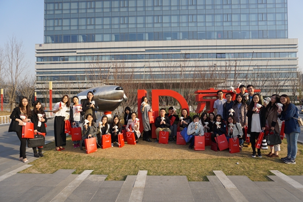 最后,在京东金融消费金融事业部张彦丽女士的带领下,同学们参观了京东新总部大楼。据了解,京东新总部总面积约28万平方米,于2015年8月16日正式启用,容纳了15000名员工。同学们先后参观了智能放映室、办公区、休闲区、健身房等区域。创意十足的办公空间、多样主题风格的会议室、琳琅满目的健身器材、温馨有趣的儿童活动区给同学们留下深刻的印象,让同学们对京东的文化、对互联网行业的工作环境有了感性的认知。