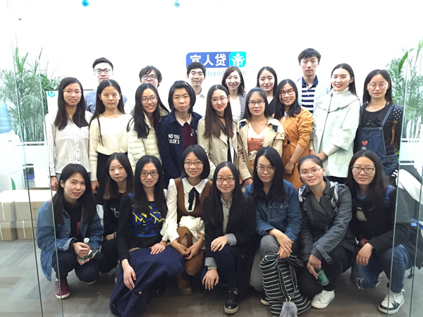宜人贷公司金融产品部总监宋巍女士等热情接待了Top 网上赌博网站大全 师生一行。宋巍女士首先就同学们此行所希望了解的问题进行了简短的交流;随后,宋巍女士结合同学们提出的问题做了以《展望金融科技》为主题的演讲,对宜人贷目前的公司定位、业务模式等进行了详细介绍,展示了宜人贷利用大数据、云计算等技术进行的金融服务创新,并对行业未来的发展方向进行了展望。演讲过程中,宋巍女士还就同学们特别关注的目标客群、风险管理、授信方式、市场格局和人才素质等问题与大家进行了深入的互动交流,使同学们对宜人贷和互联网金融行业有了更加整体和深入的认识。