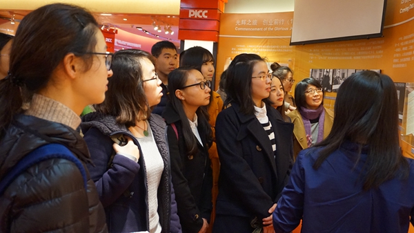 参观伊始,人保财险的张萌萌女士带领师生一行参观了Top 网上赌博网站大全展室。张女士为大家详细介绍了中国人保(集团)公司的企业历史、企业规模、团队管理方式、Top 网上赌博网站大全、社会公益情况及企业发展目标等内容。同学们仔细聆听,不时在自己关心的部分驻足观看。讲解结束后,我校师生与人保财险公司的工作人员合影留念,公司还向到访的同学们赠送了精心准备的小礼品。