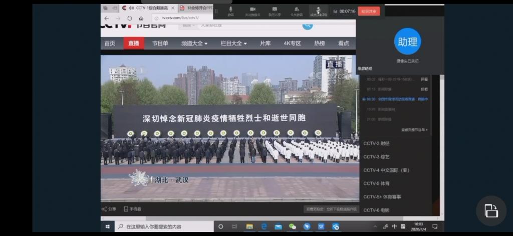 2018级金融博士班党支部积极组织支部党员、入党积极分子参加全国性悼念活动。4月3日下午,党支部书记翟丽芳同志和支部委员召开支委会,为4月4日活动做好充分准备。4月3日晚上发布正式通知:悼念活动采用钉钉视频会议形式,组织支部成员在线观看哀悼活动。