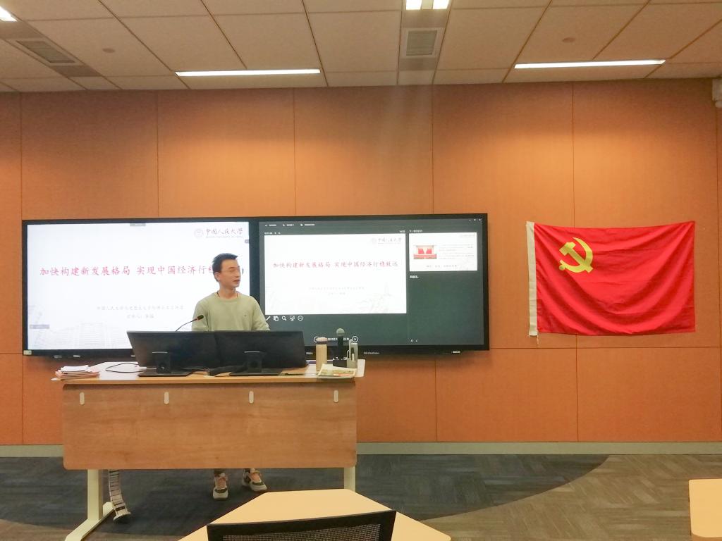 活动邀请中国人民大学博士生宣讲团讲师、马克思主义学院博士生崔猛进行主题为“加快构建新发展格局,实现中国经济行稳致远”的宣讲。