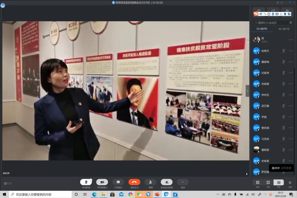 新年伊始,万物复苏。焦裕禄同志所栽的泡桐树(后被人称“焦桐”)仍屹然挺立在焦裕禄干部学院旁,如焦裕禄精神般永远深驻于人民心间。“云参观”开始后,郭雨萌同志首先对活动进行简单介绍,全场奏唱国歌、重温入党誓词。郭雨萌同志强调,今年是建党100周年,也是“十四五”规划的开局之年,更是脱贫攻坚战取得全面胜利之年。站在这伟大的历史节点上,支部成员要学习四史、学习焦裕禄精神、强化党性修养,而此次的支部共建活动就为支部成员提供了学习的契机与平台。