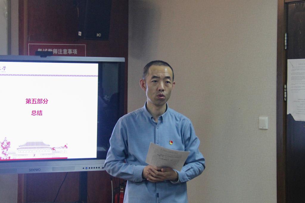 张俊岩作活动总结。张俊岩充分肯定了本次活动的成果,表示本次活动事前准备足、成员热情高、学习成效好。张俊岩对推动支部活动“从有到好”提出规范、形式、内容三方面的意见建议。他强调,习近平总书记在全国高校思想政治工作会议上指出,天边不如身边,道理不如故事。理论学习和党课汇报不能照本宣科、泛泛而谈,要深入用心,把理论与生活实践结合起来,围绕着身边故事、中国故事来做文章,用故事把道理讲通讲透。