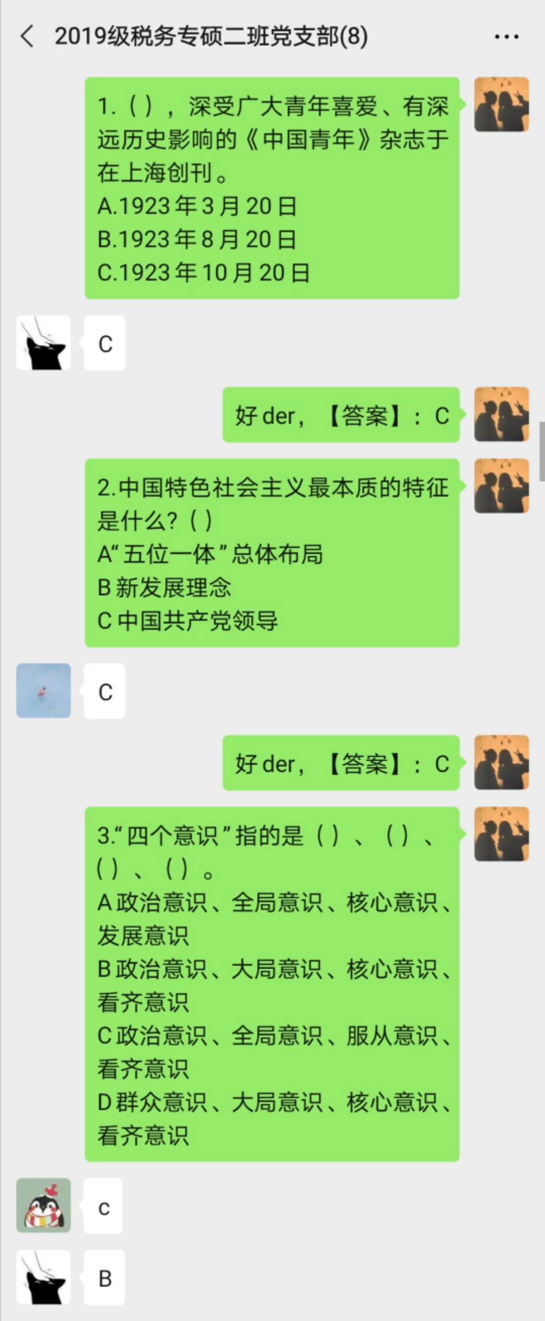 线上主题党日 | 2019级税务专硕二班党支部开展“青年大学习”知识竞赛,进一步弘扬五四精神