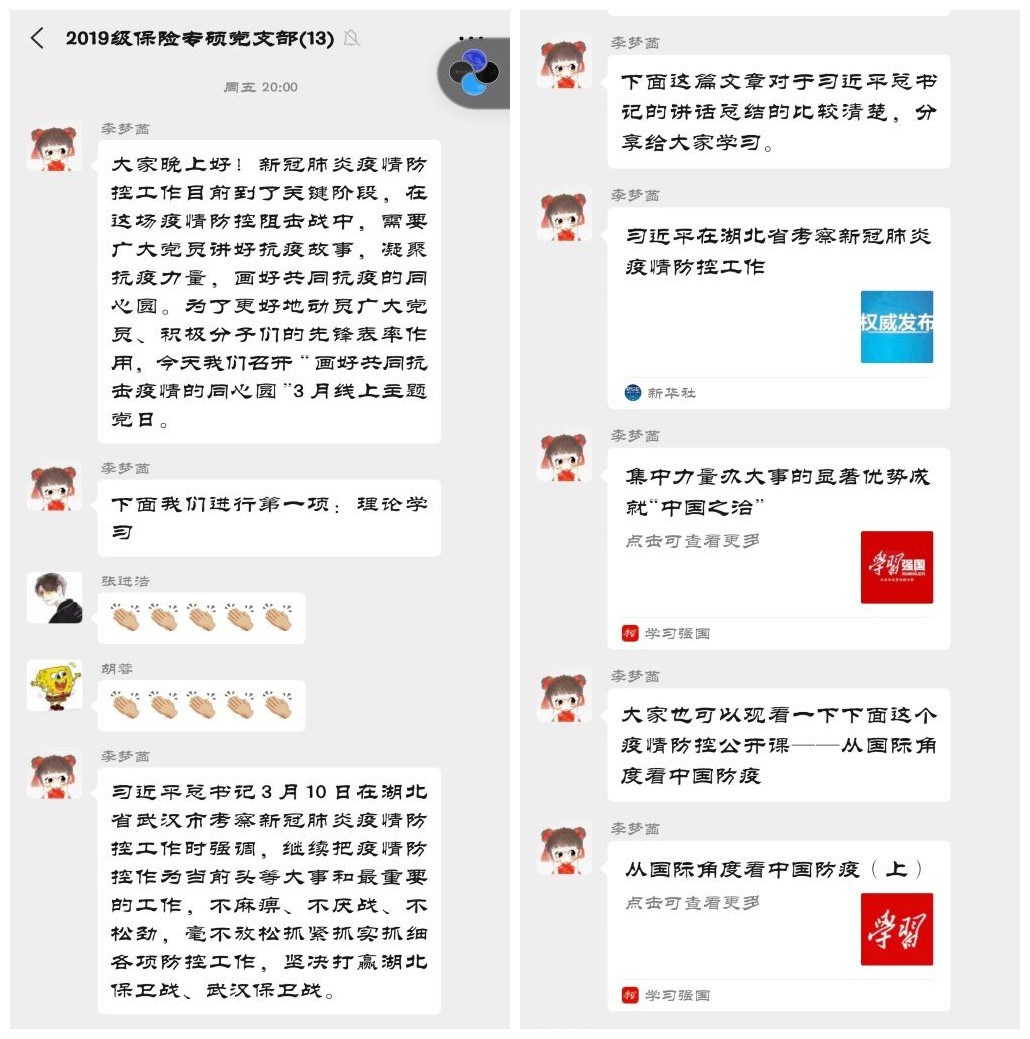 线上主题党日|2019级保险专硕党支部学习习近平总书记讲话, 画好共同抗疫的同心圆