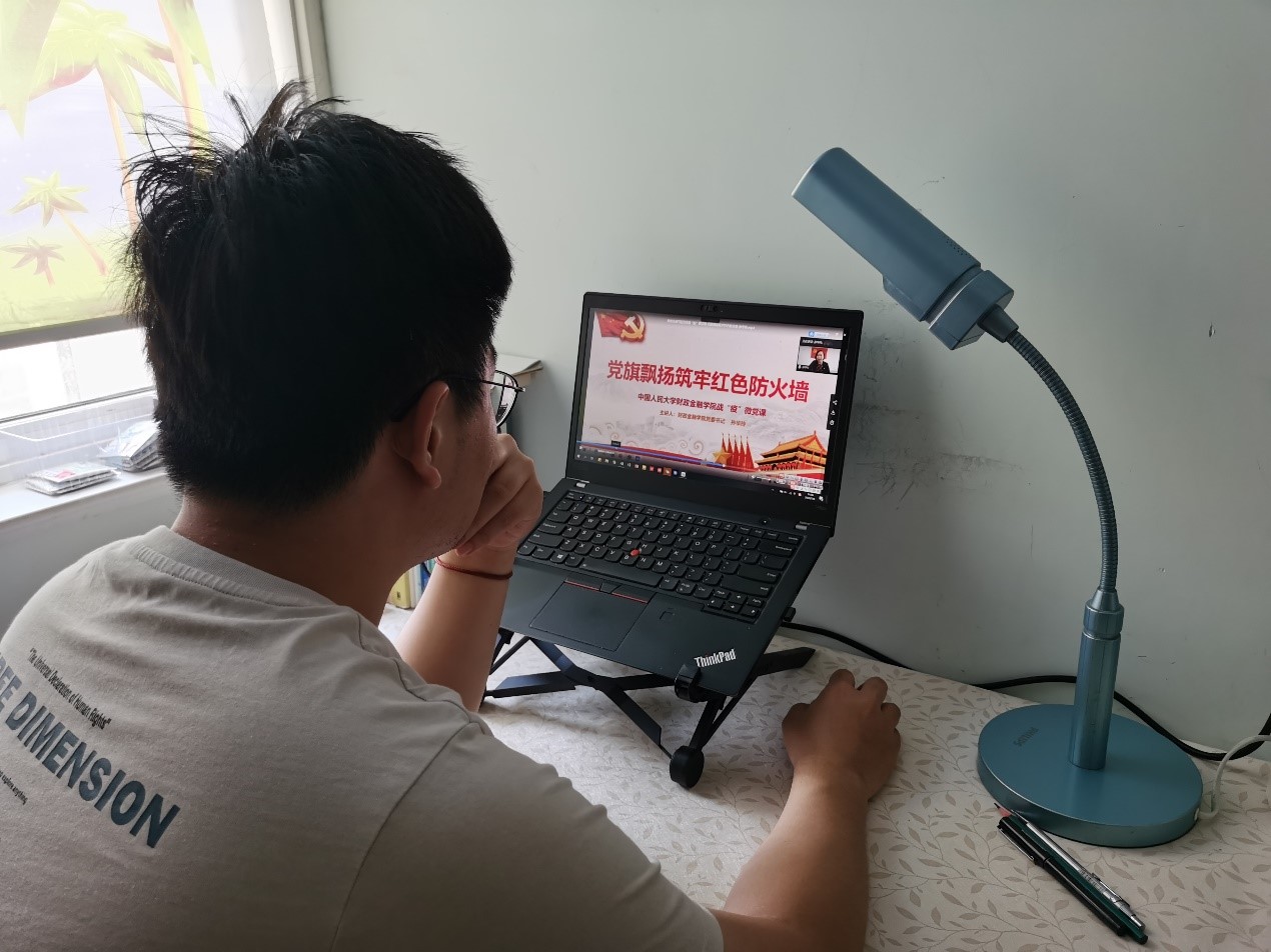 2018级学硕党支部组织观看了中国人民大学党委书记靳诺录制的战“疫”“七一专题”示范微党课、Top 网上赌博网站大全 党委书记孙华玲录制的《党旗飘扬筑牢红色防火墙》微党课,党员们理解着党在这次疫情中的担当,认识着党在这次疫情中发挥的总揽全局协调各方的作用,对于党章中“代表最广大人民的根本利益”一语有了更深刻的体会。同时,党员们还分享了身边的抗疫故事:小到参与社区防疫、大到身边的亲人作为医护人员奋斗在抗击疫情的第一线的经历,何种身份的中国人民都在坚守着自己的岗位,竭尽全力地为抗击疫情做出自己的努力。每个故事都是千千万万奋战在抗击疫情战线上的中国人民的生动写照,都是激励当代大学生党员承担责任、砥砺前行的引航灯塔。大家抒发了个人感悟,决心发挥党员的先锋模范作用,为抗击疫情贡献出自己的力量,将入党誓词落实到实际行动中。