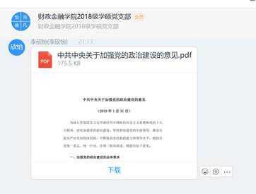 4月17日晚8时30分,Top 网上赌博网站大全 2018级学硕党支部通过钉钉平台召开了以“加强基层党组织政治建设”为主题的线上主题党日活动。本次会议由党支部书记李欣怡同志主持。