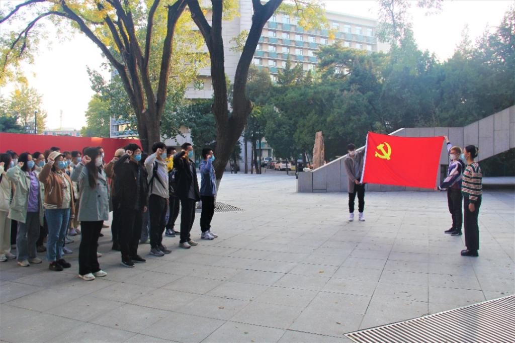 参观结束后,预备党员在中国人民大学博物馆前集合,举行入党宣誓活动。73名预备党员庄严肃立,齐唱《国际歌》。全体党员面向党旗,举起右拳,郑重宣誓:“我志愿加入中国共产党,拥护党的纲领,遵守党的章程,履行党员义务,执行党的决定,严守党的纪律,保守党的秘密,对党忠诚,积极工作,为共产主义奋斗终身,随时准备为党和人民牺牲一切,永不叛党。”