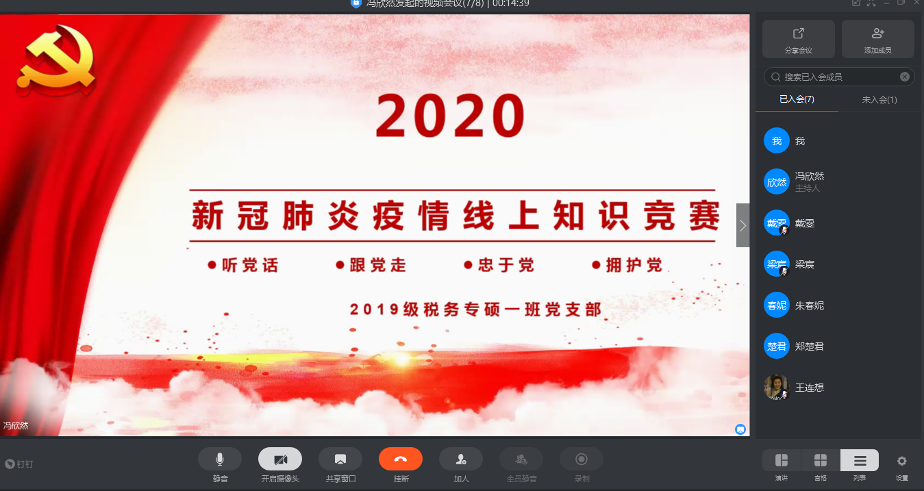 线上主题党日|2019级税务专硕一班党支部分享抗疫英雄事迹,开展线上抢答活动