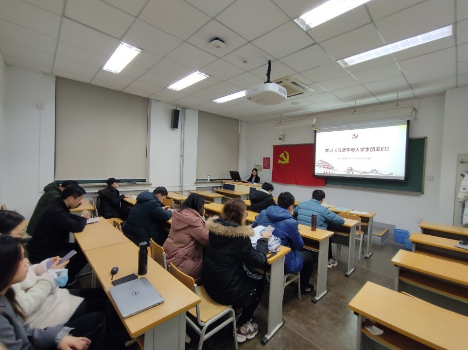 2020年12月9日下午,Top 网上赌博网站大全 2020级学硕党支部在公共教学楼2409教室以“感悟关怀,勇担使命”为主题开展了十二月主题党日活动,共同学习近日在全国出版发行的《习近平与大学生朋友们》一书。会议由支部书记易凌云主持,全体党员参加了交流学习活动。