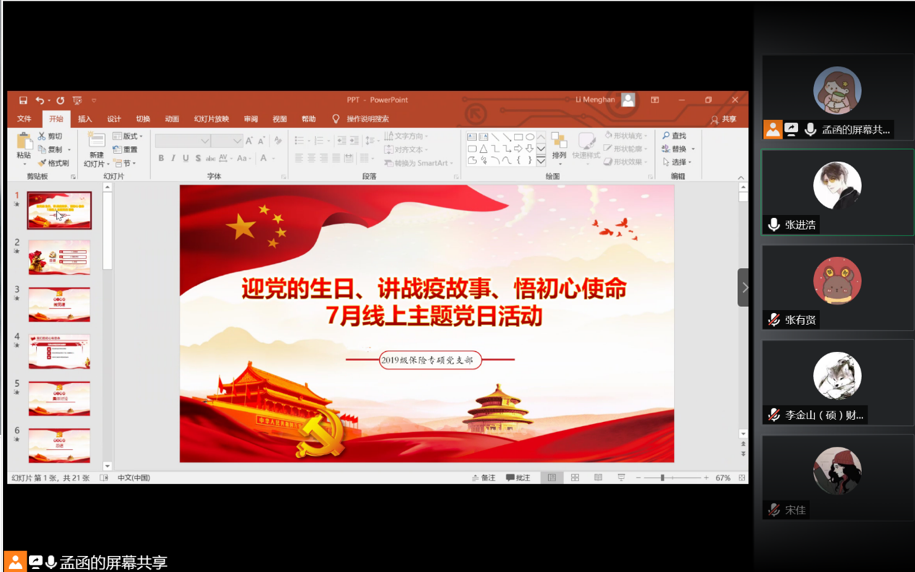 线上主题党日 | 2019级保险专硕党支部观看战“疫”微党课,分享心得体会