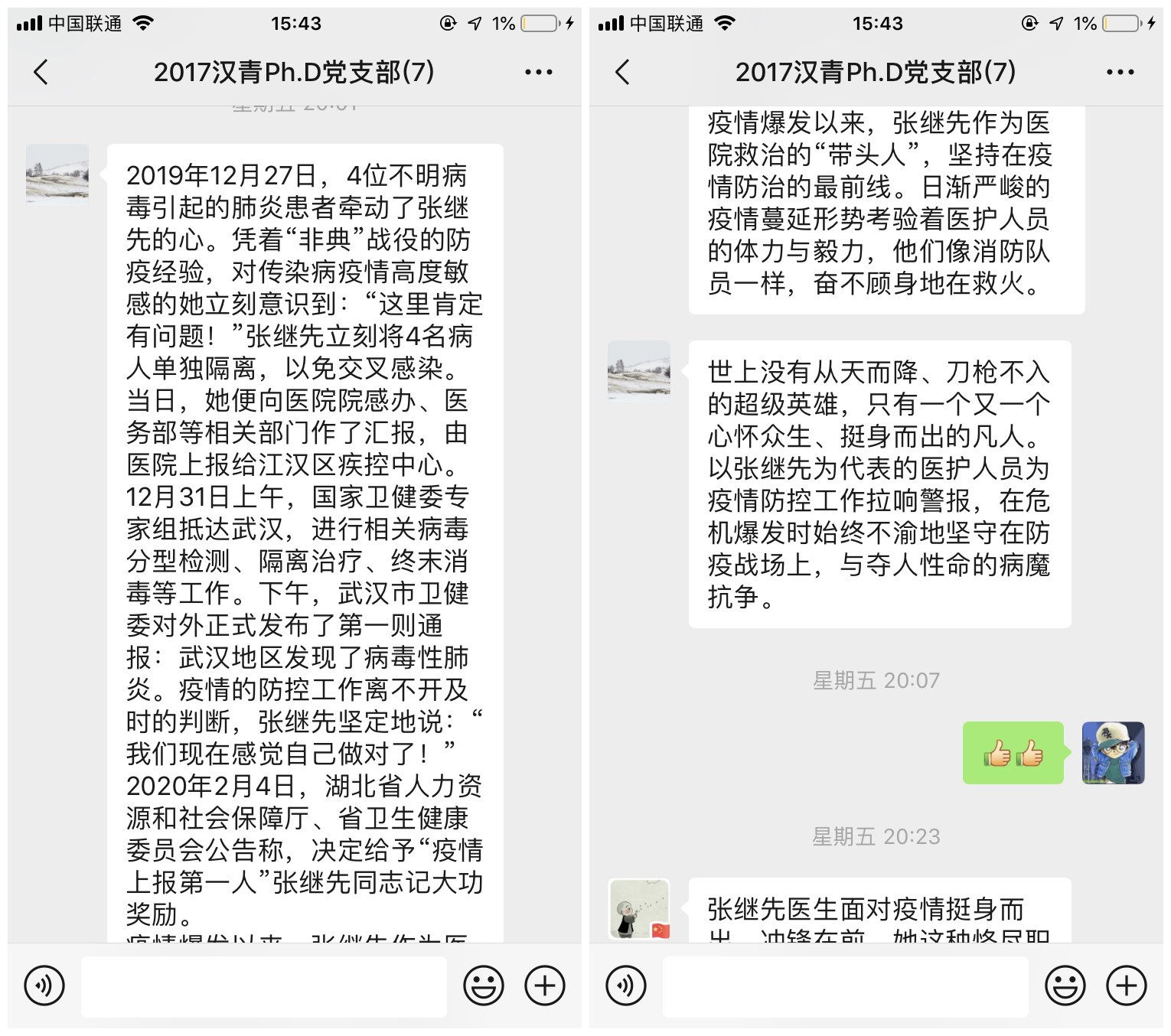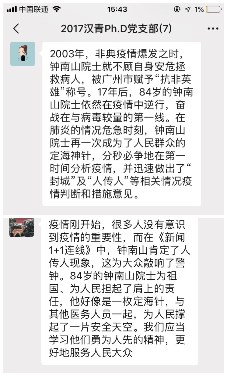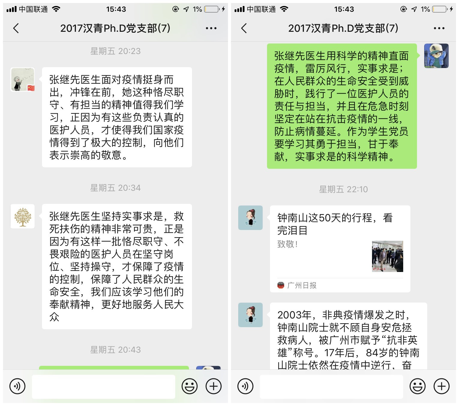 线上主题党日|2017级汉青学硕党支部学习先进事迹,同心抗疫,不忘初心