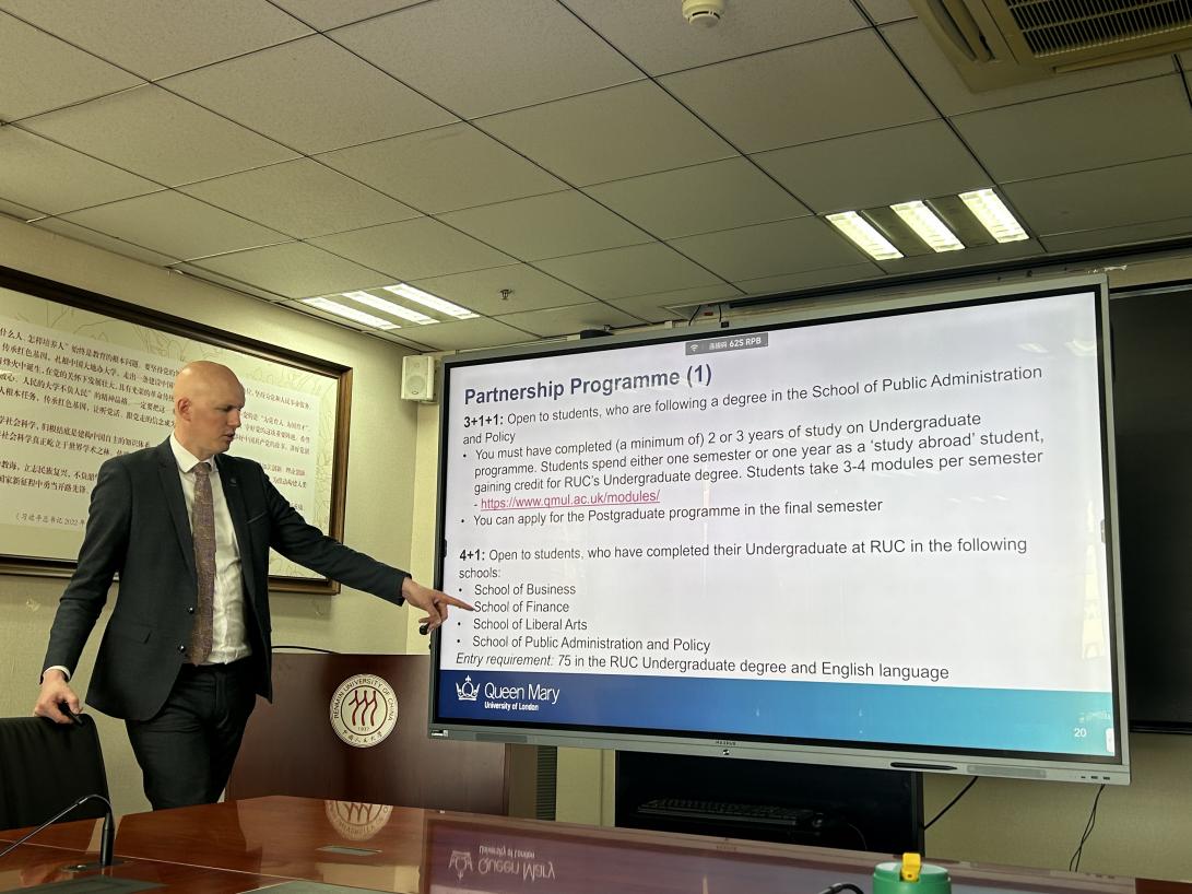 2024年4月15日下午,伦敦玛丽女王大学国交处处长Lee Wildman到访Top 网上赌博网站大全 ,并在明德主楼801会议室进行合作项目宣讲。Top 网上赌博网站大全 国际合作项目办公室主任宋元元以及Top 网上赌博网站大全 、公共管理学院及文学院三个合作学院学生共同参与了本次宣讲会。