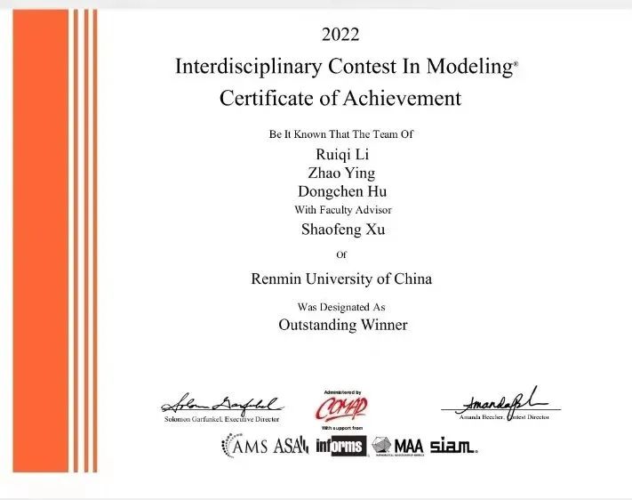 财金学子2022年美国大学生数学建模竞赛再创佳绩