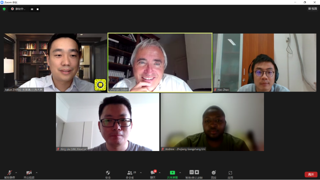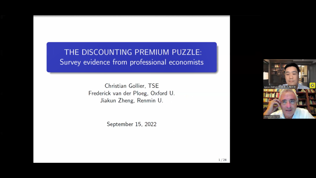 时间:2022-09-182022年9月15日,中国人民大学海外名师讲堂——风险与社会贴现率讲座以在线方式成功举办。