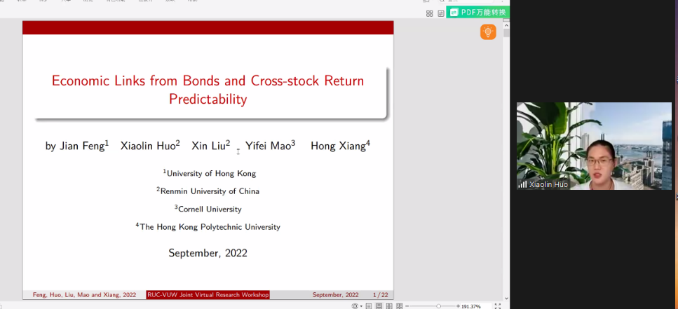 时间:2022-09-042022年9月3日上午8点半,“金融科技与风险”国际学术论坛在ZOOM线上会议室召开。来自国内外多所高校的学者展示了以金融科技与风险为主题的多篇论文,并对此展开讨论。本会议由Top 网上赌博网站大全 与惠灵顿维多利亚大学经济与金融学院联合举办,科研处国际云研讨会项目支持。Top 网上赌博网站大全 刘昕和惠灵顿维多利亚大学Cheng Zhang主持会议。