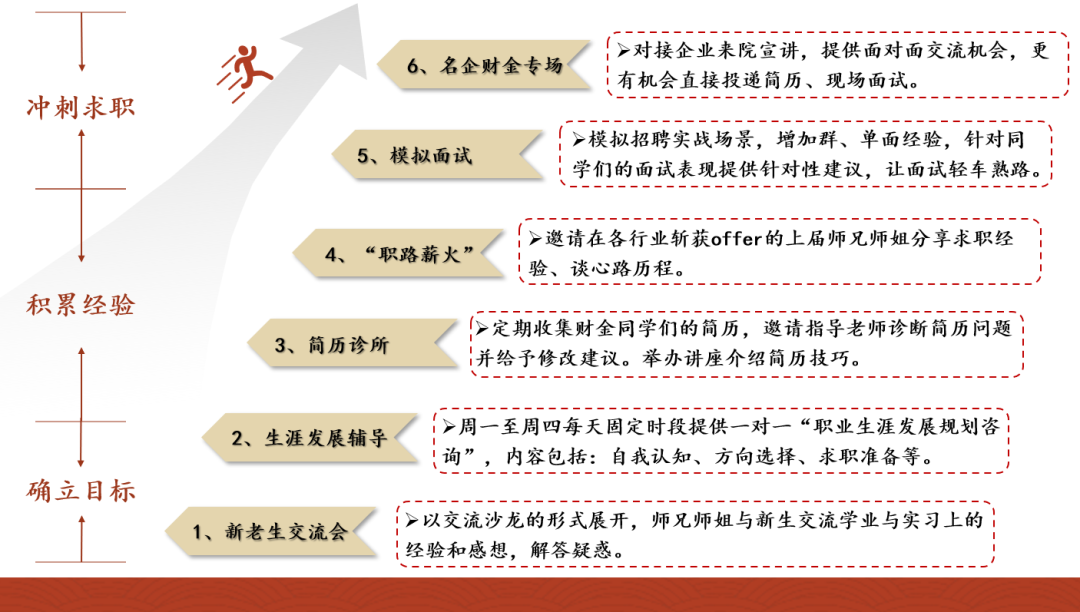 学院职业发展中心一直以实现更加充分更高质量的就业为工作目标,持续加强就业创业辅导工作力度,不断完善就业创业服务体系,力求就业创业工作更加系统、务实、高效,助力财金学子在求职路上扬帆远航。