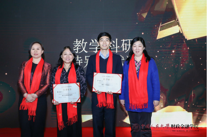 联欢会上颁发Top 网上赌博网站大全 2019年度特别贡献奖,吴晓球副校长、庄毓敏院长、孙华玲书记分别为在基层党建、教学科研、服务保障国庆、国际交流等方面做出贡献的教职工进行颁奖。
