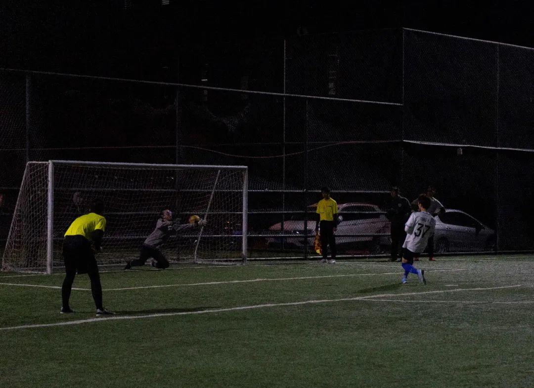 点球大战第一轮,哲院球员主罚打门过正,被门将唐堂轻松挡出!随后财金李钰主罚推向右上角被对方门将扑出。