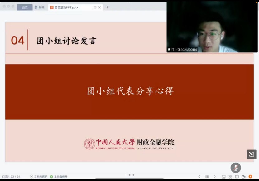 为了深刻理解习近平总书记在考察中国人民大学时的讲话以及在中国共产主义青年团成立100周年讲话内容的丰富内涵,2021级本科金融二班团支部采用团小组讨论的形式,把支部成员划分为九个团小组,深入开展团小组讨论发言的活动。