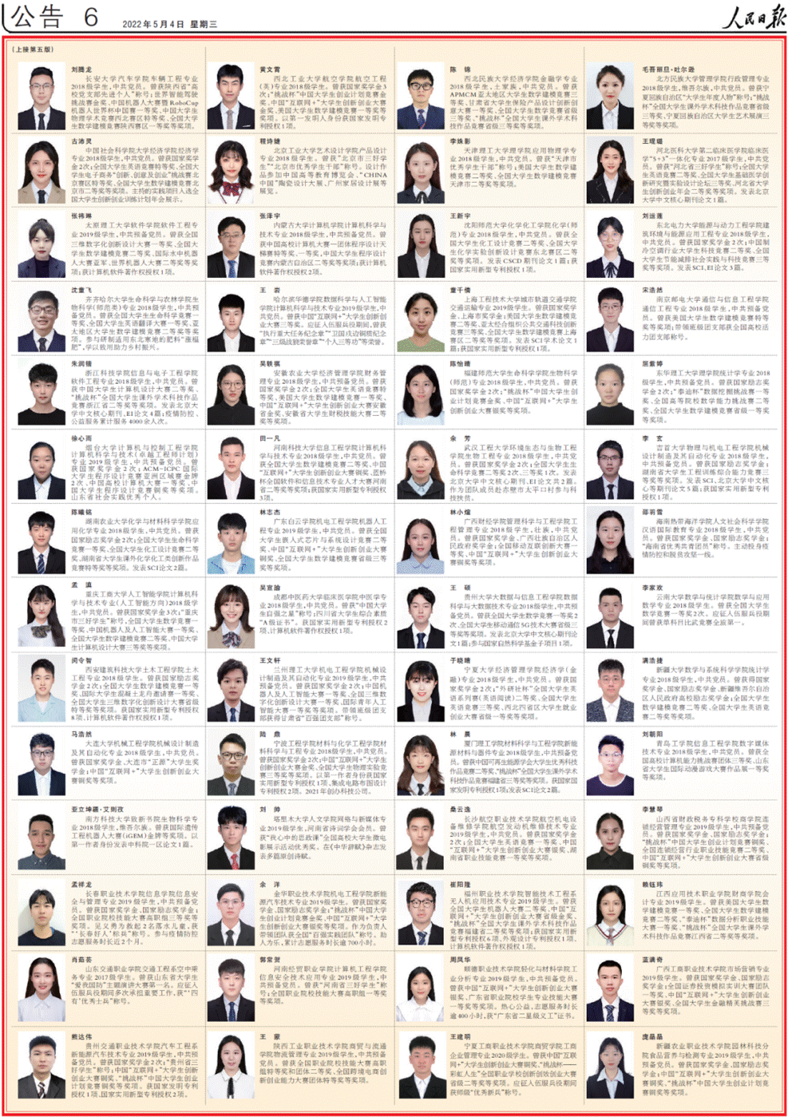 时间:2022-05-045月4日出版的人民日报,用四个整版刊登了100名本专科生国家奖学金获奖学生优秀代表和100名中等职业教育国家奖学金获奖学生优秀代表名录。Top 网上赌博网站大全 2018级本科生周梓玉上榜!