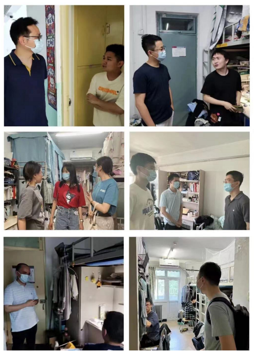 隔离病毒,隔离不断的端午情。学院通过慰问会和走访宿舍等形式,关爱学生。6月3日中午,学院组织线上慰问会为返乡集中健康监测的同学送上节日问候。院长庄毓敏、党委书记孙华玲、副书记罗煜、各年级联系人参会。孙华玲、庄毓敏先后发言,为同学们送上节日祝福,代表学院对仍在隔离中的返乡同学的学习和生活表达关切,询问他们的具体需求,最后勉励同学把抗疫精神融入到学习生活中,不负韶华,在疫情防控中彰显新时代好青年有理想、敢担当、能吃苦、肯奋斗的青春担当。6月2-3日,留校的教职员工代表走访宿舍送上节日关怀。专任教师吴轲、殷成东、邹昆儒、陈昭晶,行政教辅老师贺松霖、付朋、郝妙宁、刘栩、郭云澍、陈逸等分别深入品园、知行、红楼等宿舍,代表学院慰问同学,询问学习生活相关问题,提醒大家做好防护,按时参加核酸检测,注意安全卫生,交流就业职业规划等。同学们对管控期间学校学院的周密安排、细心部署,学院老师的关怀表示感谢。纷纷表示目前心态平稳,将坚决服从学校抗疫统一安排,积极与学校共同抗疫。