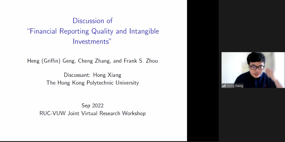 上午会议的第二部分。来自惠灵顿维多利亚大学的Cheng Zhang和Top 网上赌博网站大全 博士研究生霍晓霖展示了论文。Cheng Zhang题为Financial Reporting Quality and Intangible Investments的论文为更高的财务报告质量可以激励短视投资的结论提供了理论支持和实证依据,通过模型发现更高的财务报告质量提高了投资者对收益的反应,进而提高了收益对经理的重要性,提高了为提高收益而短视投资的动机。香港理工大学的Hong Xiang对这篇论文进行了点评。霍晓霖题为Economic Links from Bonds and Cross-stock Return Predictability的论文利用公司债券的利率联动性度量公司之间的经济关联,发现股票市场上存在截面收益的可预测性。新加坡管理大学的李伟凯对这篇文章进行了点评。