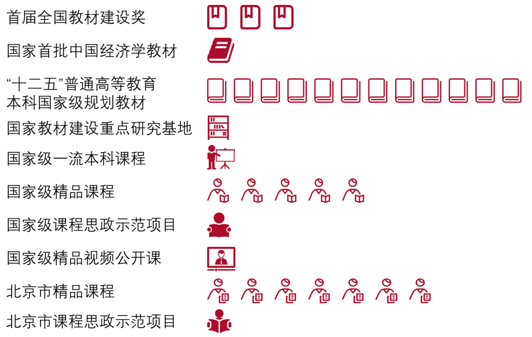学院长期坚持本土经典教材建设,成为国内财政金融高等教育的工作母机。3本教材获得首届全国教材建设奖全国优秀教材一、二等奖,1本教材入选国家教材委员会首批中国经济学教材,12本教材入选“十二五”普通高等教育本科国家级规划教材,多部教材获得省部级以上优秀教材奖。学院参与建设的中国人民大学经济学教材研究基地于2019年入选教育部首批国家教材建设重点研究基地。学院现有1门国家级一流本科课程、5门国家级精品课程、1个国家级课程思政示范项目、1门国家级精品视频公开课、7门北京市精品课程、1个北京市课程思政示范项目。