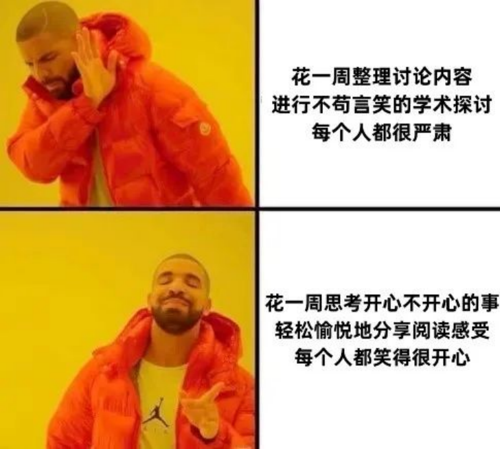 很高兴能够和大家一起完成这次读书会!不论是知识的摄取还是情感的支持,都能在读书会和大家一起实现,是大学的一次独特又难忘的体验~